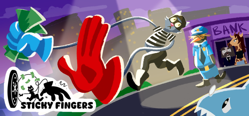 Sticky Fingers is a goofy couch-coop game where two players each control a single hand of a master thief. Work with your friend to evade security, navigate traps, and snatch up all the loot you can manage, before escaping from the scene of the crime. The game is built for PC (will be available on Steam) and Nintendo Switch.